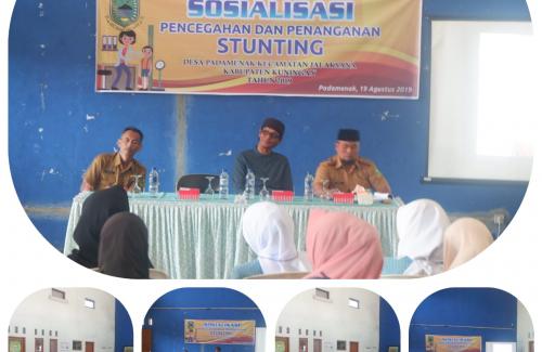 Dalam rangka meningkatkan kesadaran masyarakat terkait dengan tumbuh kembang anak sejak dini, pemerintah desa melalui kegiatan sosialisasi tentang pencegahan dan penanganan stunting yang bekerja sama dengan UPTD Puskesmas Jalaksana dan Dinas Kesehatan Kabupaten Kuningan. Kegiatan yang dihadiri unsur aparatur pemerintahan desa, kelembagaan desa dan tokoh masyarakat diharapkan dapat disampaikan kepada masyarakat luas agar para orang tua yang memiliki Balita untuk lebih dapat memberikan asupan gizi yang cukup dalam memenuhi kebutuhan gizi anak. Kondisi stunting yang sekarang sedang menjadi issue nasional, menjadi pusat perhatian semua pihak baik dari pemerintah pusat, daerah sampai ke desa, agar dapat ditekan seminimal mungkin sehingga terwujud sumber daya manusia yang sehat dan unggul.